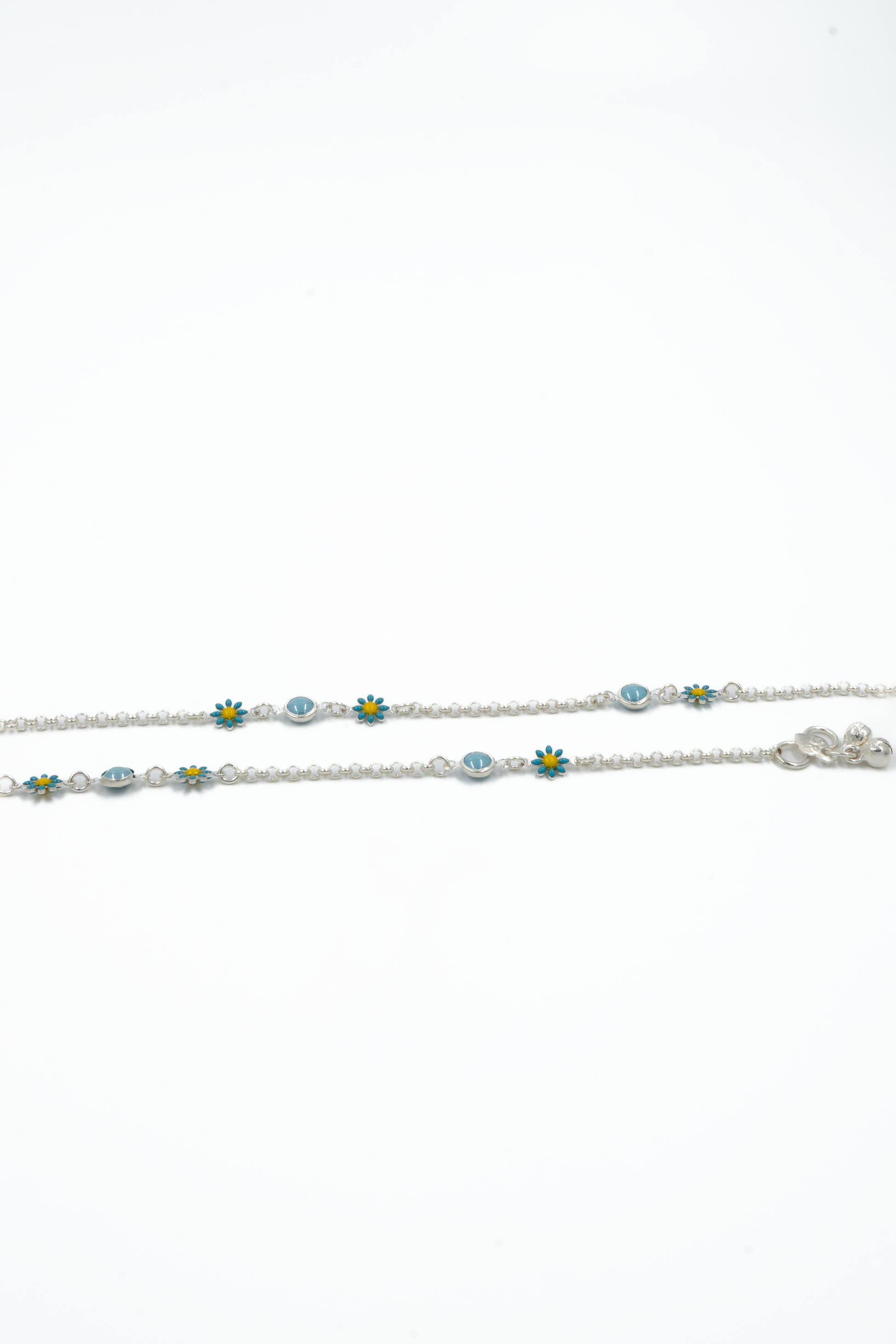 This silver anklet, with turquoise pearls and floral accents, captures the essence of a tropical beach getaway. Lightweight and stylish, it's the perfect summer accessory for a fresh, breezy look!