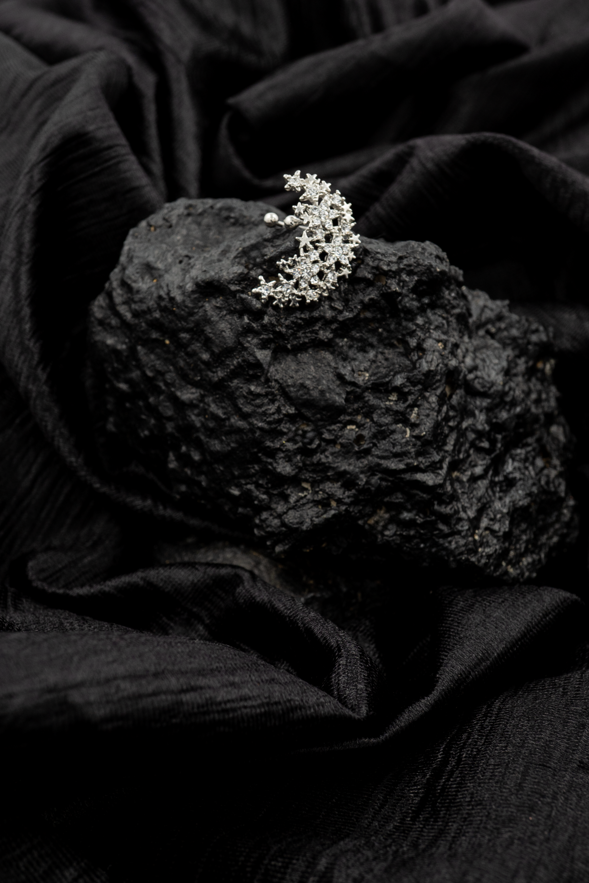 Shimmer like moonlight with our Moon Glow Ear Cuff. Designed with twinkling star-shaped crystals in a sleek silver finish, this no-piercing cuff wraps around your ear for a magical, celestial touch. Lightweight, comfy, and perfect for everyday sparkle or special nights out.