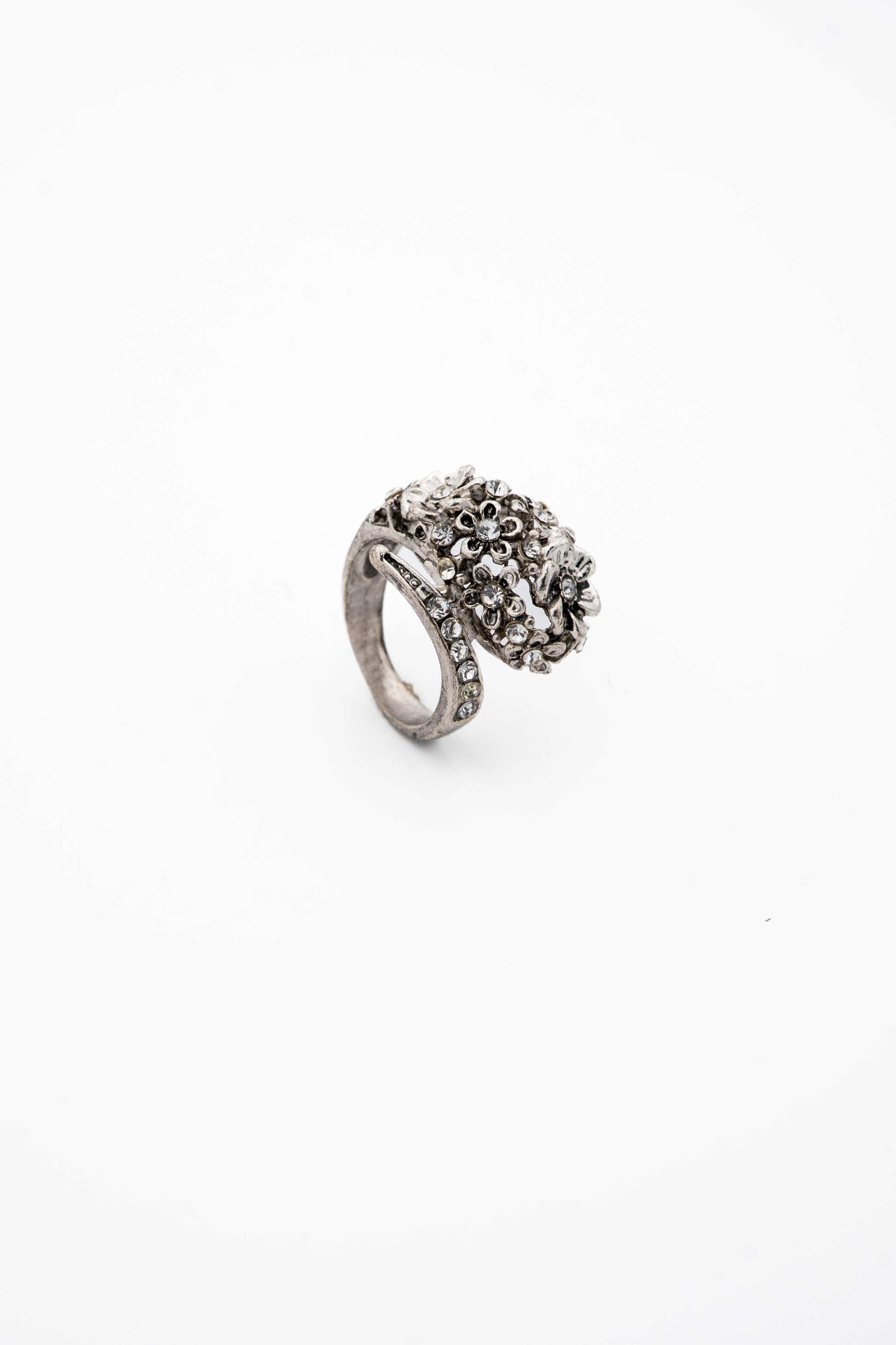 A garden of sparkle, the Enchanted Bloom Cluster Ring blends vintage charm with floral elegance in a silver-tone statement piece.