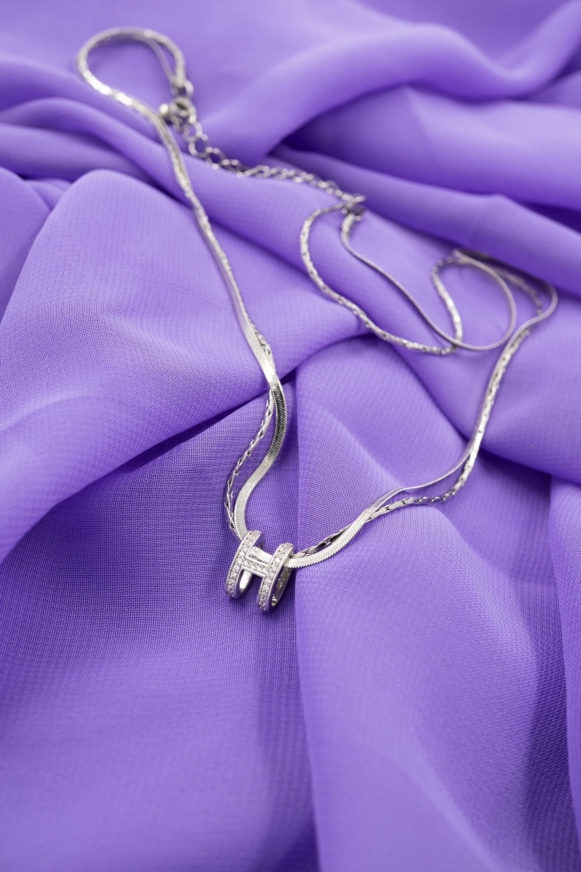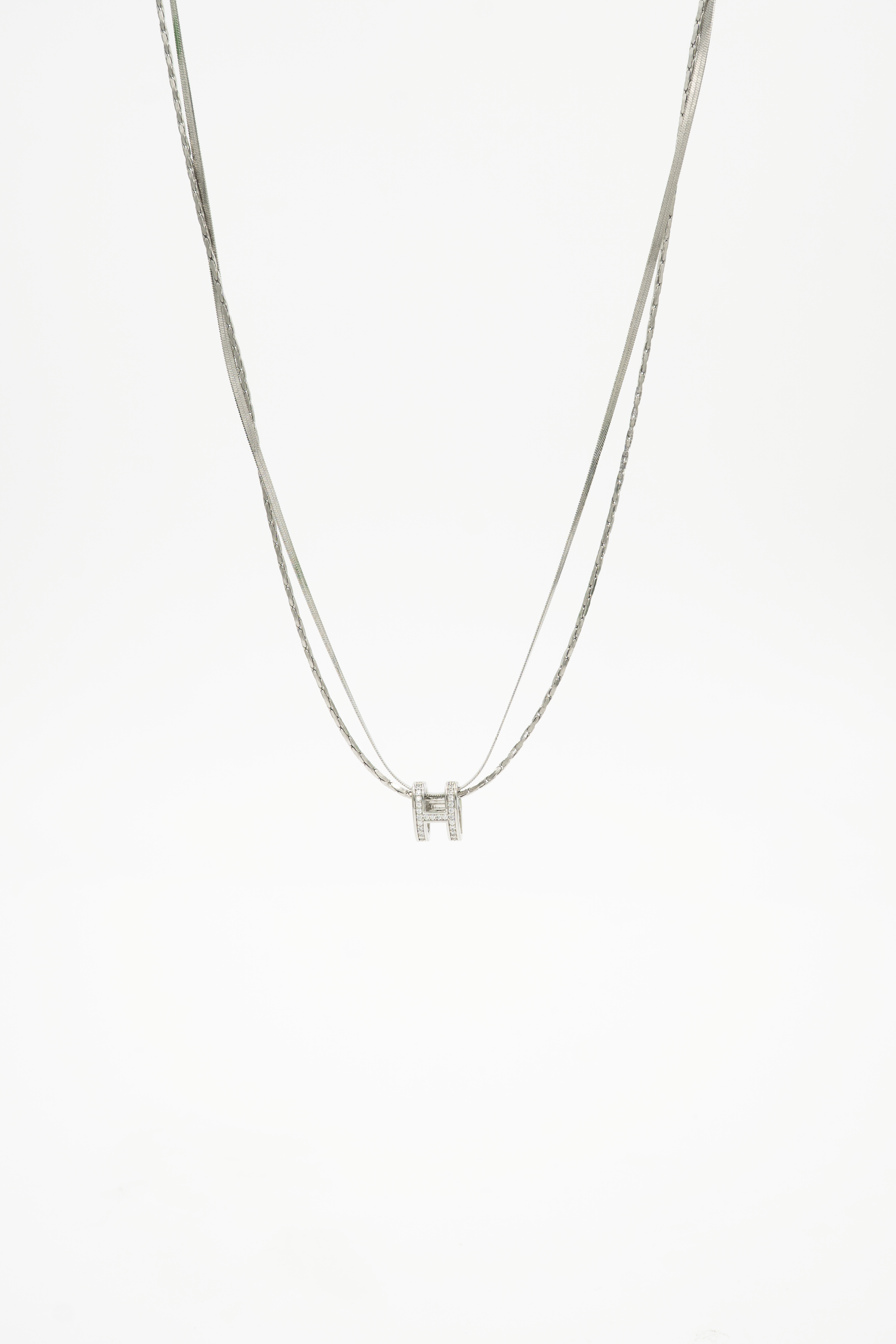 Bold yet refined, this silver-tone necklace features a sleek snake chain and a crystal-studded "H" pendant—perfect for daily wear or chic layering.